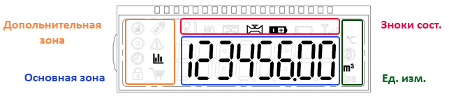 Дисплей разделён на 4 зоны индикаций: